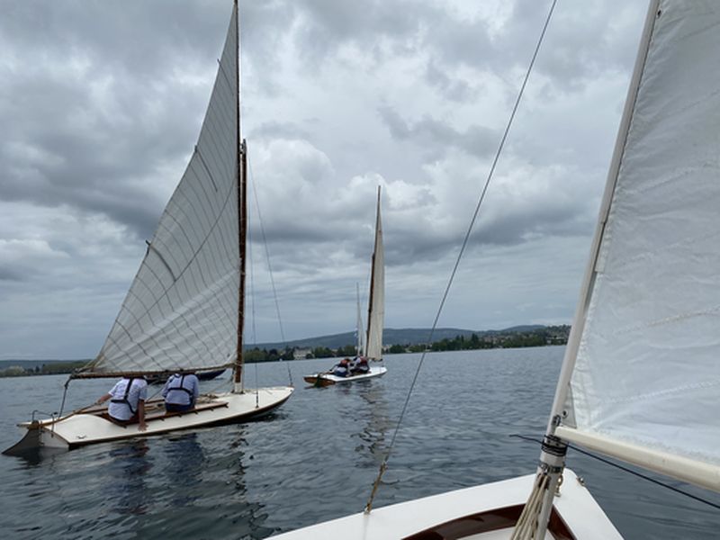 Les Voiles du Lac, week-end du 6-7 mai 2023 : invités par les Vieux Safrans d'Annecy, une trentaine de bateaux de tradition en bois ont navigué en régate ou en parade sur le lac d’Annecy. Certains navires avaient plus d'un siècle, comme le Monotype de Chatou. L'un d'eux, Quod Amo, représentait la Ville de Chatou et Sequana.