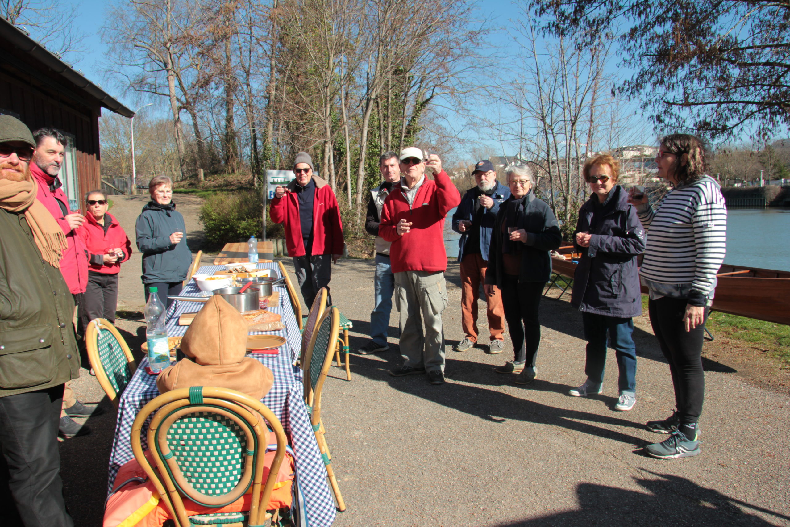 Rappel des consignes pour les uns ou première initiation pour les autres, tous sont embarqués et les yoles filent, aidées par le courant vers l'aval, et par la force des muscles laissés en sommeil plusieurs mois à la remontée. Quelques avirons vinrent saluer les trois demoiselles à l'âge respectable, dont la périssoire croissillonne Pile ou Face un jeune croisillon bien connu.