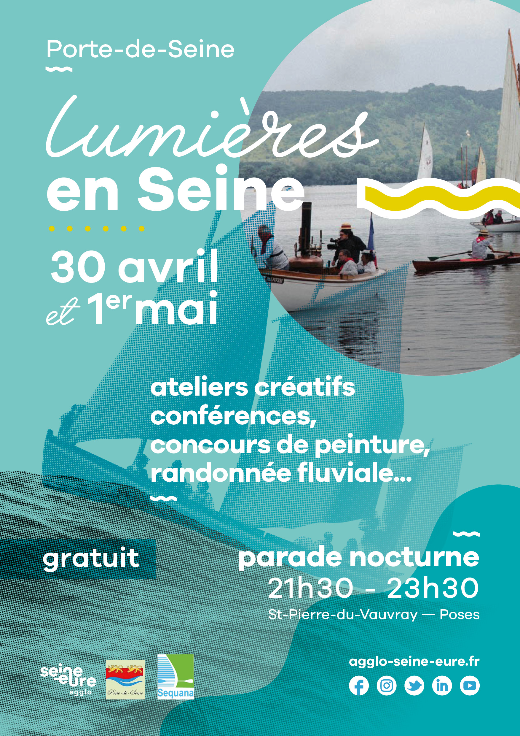 Les 30 avril et 1er mai, Sequana a participé à la manifestation Lumières en Seine, organisée à Portejoie en Normandie, près de Poses.