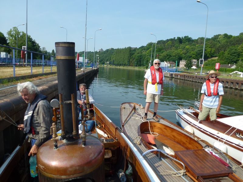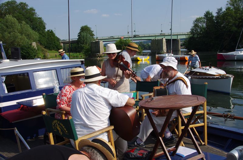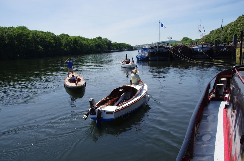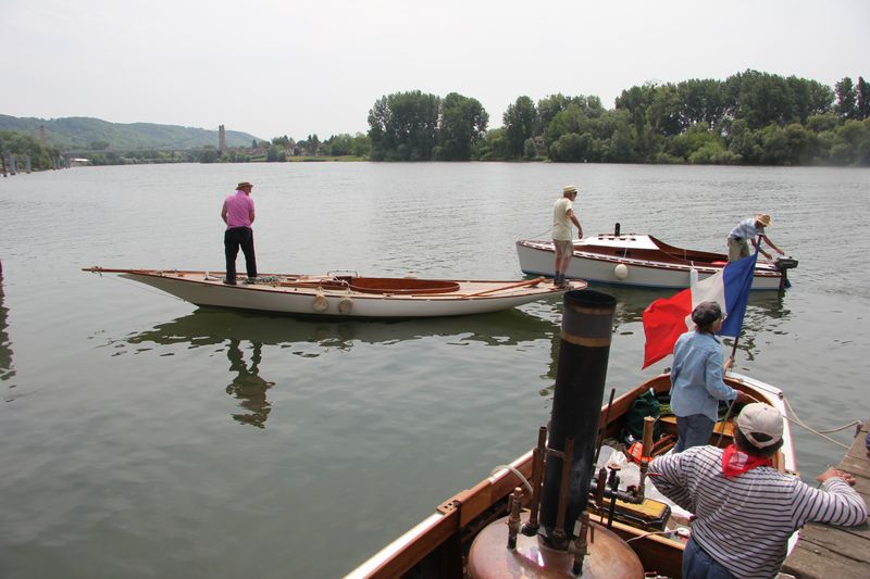 Une dizaine de yolettes se sont amarrées devant la Gare d’eau ; dans une chorégraphie parfaitement fluide , les bateaux d’assistance dirigeaient les yolettes vers leur point de stationnement, et pendant ce temps-là les premiers arrivés se détendaient autour de l’apéritif.