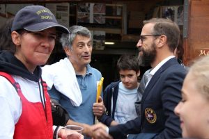 Une dizaine de yolettes se sont amarrées devant la Gare d’eau ; dans une chorégraphie parfaitement fluide , les bateaux d’assistance dirigeaient les yolettes vers leur point de stationnement, et pendant ce temps-là les premiers arrivés se détendaient autour de l’apéritif.
