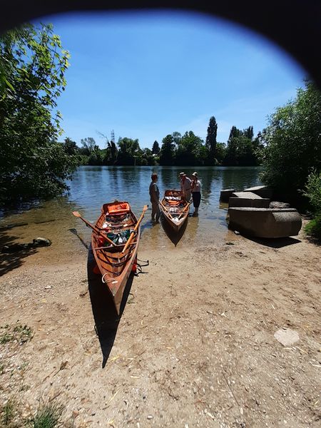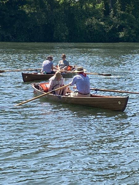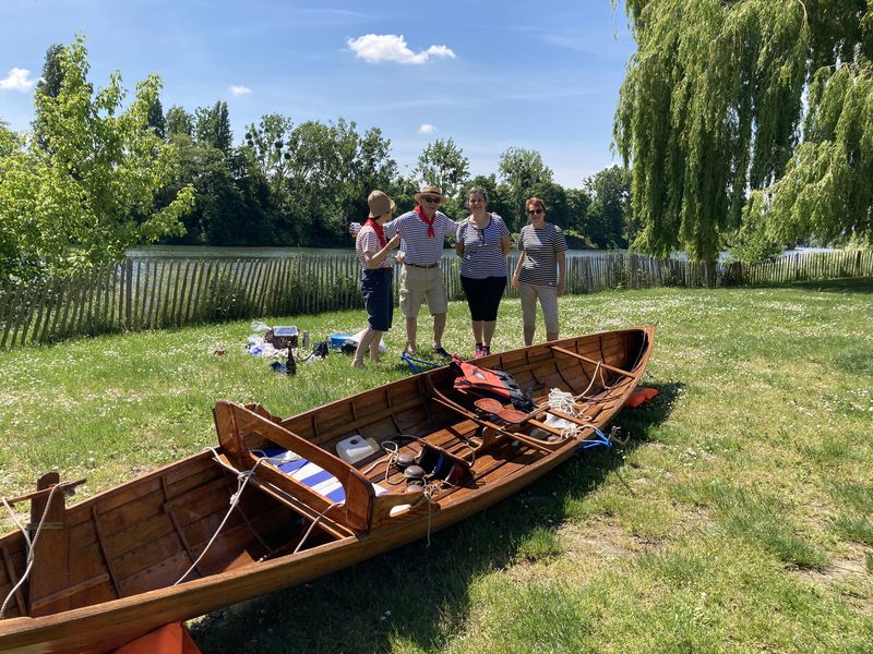 Les quatre compères avaient choisi avec soin le jour de la randonnée, un temps idéal, invité deux vieilles amies, les yoles Lulu et Jako pour une journée d'exercice. La navigation a été parfaite ; Kareen et Pierrick, deux rameurs chevronnés menaient les opérations, soutenus par leurs barreuses, Brigitte et Marie-Pierre. Une eau limpide à Carrières, une yole a passé le repas au pied de la cale de mise à l'eau, l'autre a gouté l'herbe verte de la magnifique promenade de Carrières le long de la Seine. La Ville de Carrières avait aimablement autorisé cette halte reposante. Les séquanais n'imaginent pas une sortie sans un bon pique-nique revitalisant et rarement raté ! Le retour a été rapide , dans le sens du courant de la Seine... salué par ses hôtes familiers tels hérons, tortues perchées sur les arbres de la berge, cygnes gardant férocement leur nid...