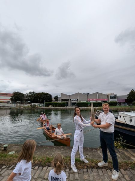 Ainsi vendredi 26 juillet 2024,  dans la matinée, les porteurs de flamme ont été accueillis sur le canal Saint-Denis par des bateaux exceptionnels et emblématiques de nos associations :